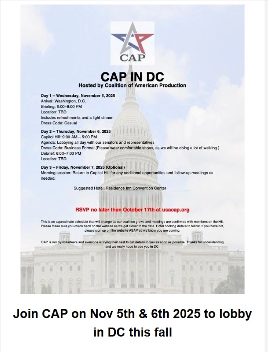 Visit usacap.org to learn more, join CAP, or register for the trip to Washington. Together, we can protect the future of our industry and ensure that American production remains a force of creativity, craftsmanship, and culture for generations to come.